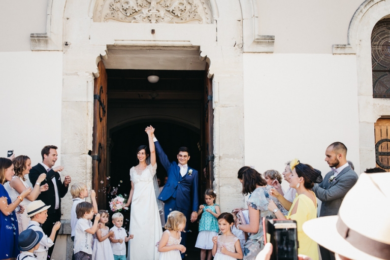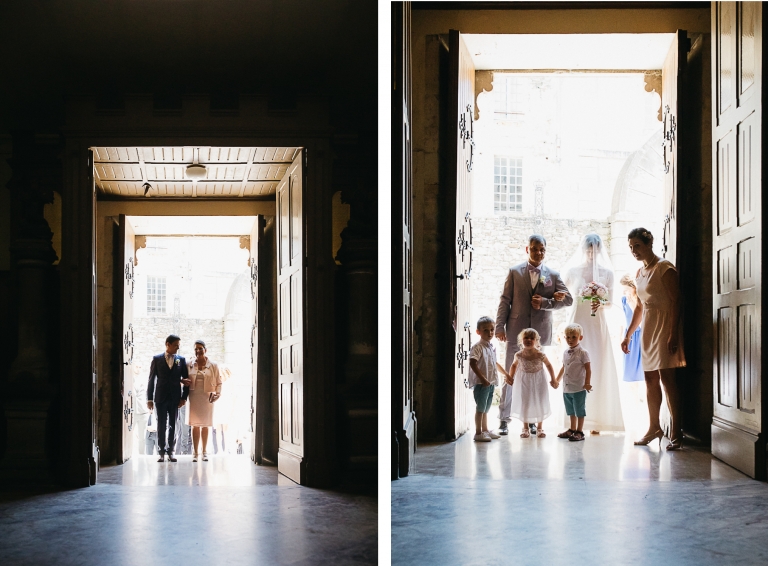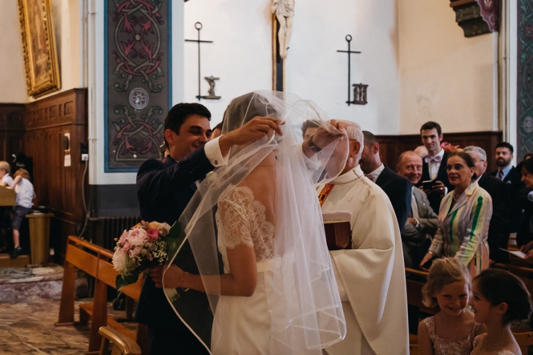Après un court moment de calme, les cloches de l’Eglise située à quelques mètres de la maison nous appelaient déjà à venir assister à l’union de Jessica et Antoine. Ce moment tant attendu par le couple et si important à leurs yeux allait enfin commencer. Antoine, accompagné de sa maman s’avança dans l’église puis attendu sa future femme, elle arriva au bras de son papa lui-même submergé par l’émotion. C’est sous le regard de leurs proches qu’ils se sont dit oui, au cours d’une belle cérémonie.